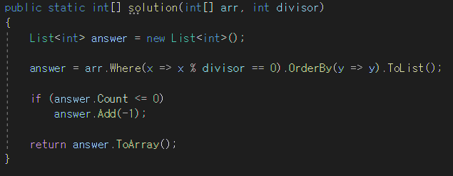 만약 divisor 로 나누어떨어지는 element가 없을시 -1 을 반환